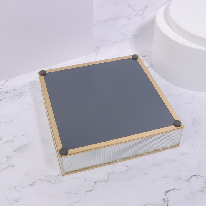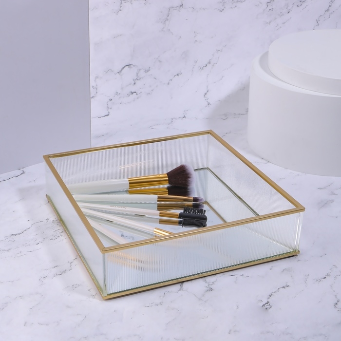Органайзер для хранения «RIPPLES», стеклянный, с зеркальным дном, 1 секция, 20 × 20 × 5 см, цвет прозрачный/медный