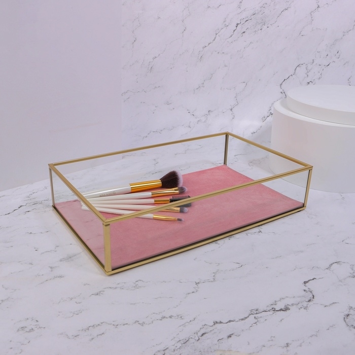 Органайзер для хранения «PINK RIPPLES», стеклянный, 1 секция, 29 × 17,5 × 6 см, цвет прозрачный/медный/розовый