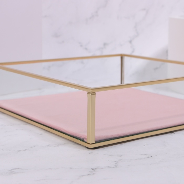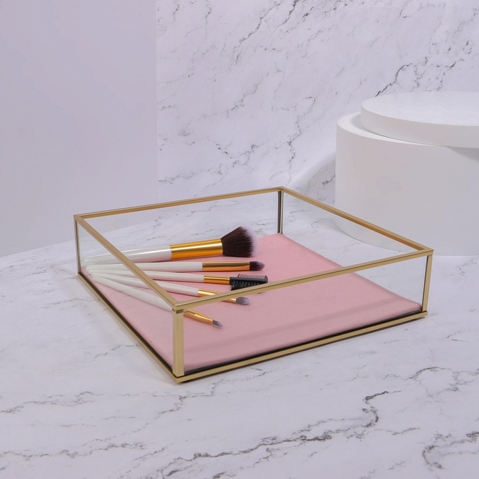 Органайзер для хранения «PINK RIPPLES», стеклянный, 1 секция, 20 × 20 × 5 см, цвет прозрачный/медный/розовый