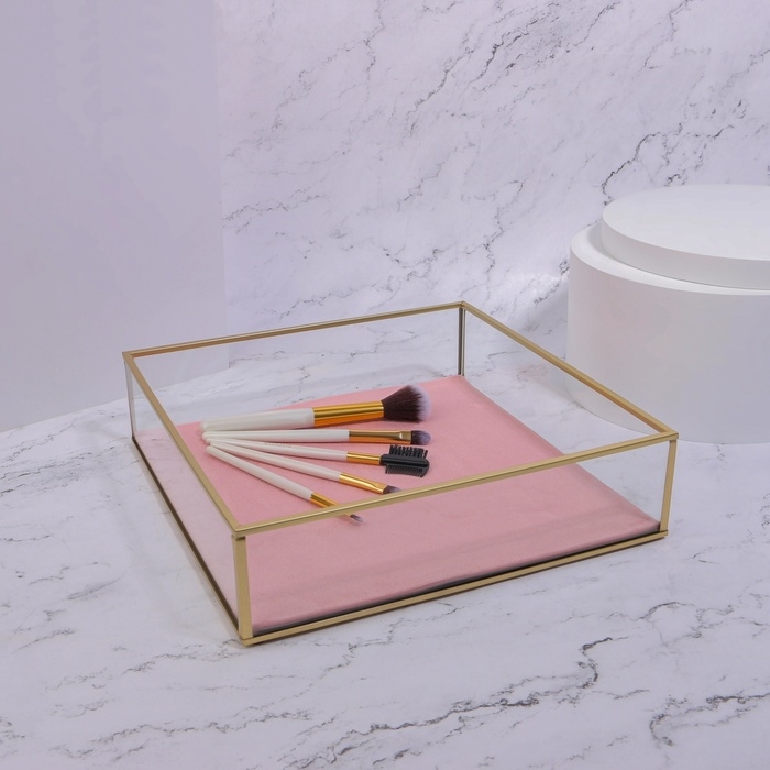 Органайзер для хранения «PINK RIPPLES», стеклянный, 1 секция, 24 × 24 × 6,5 см, цвет прозрачный/медный/розовый