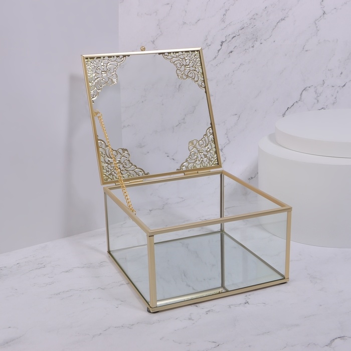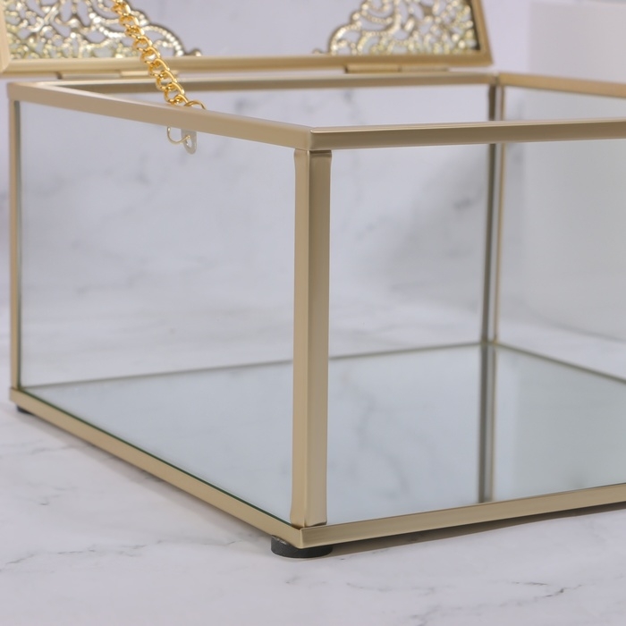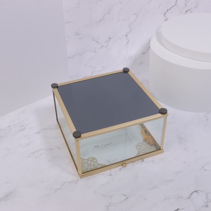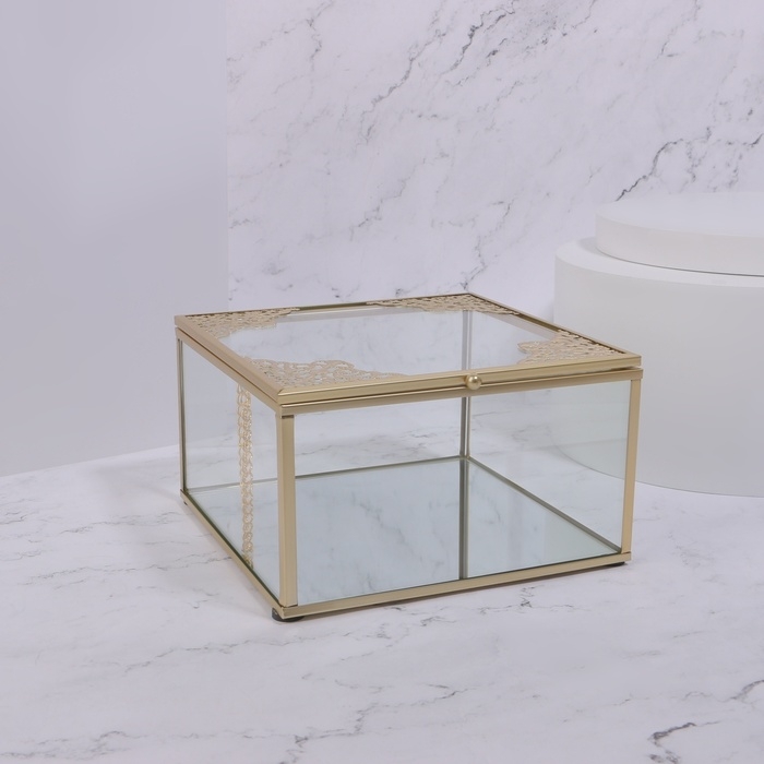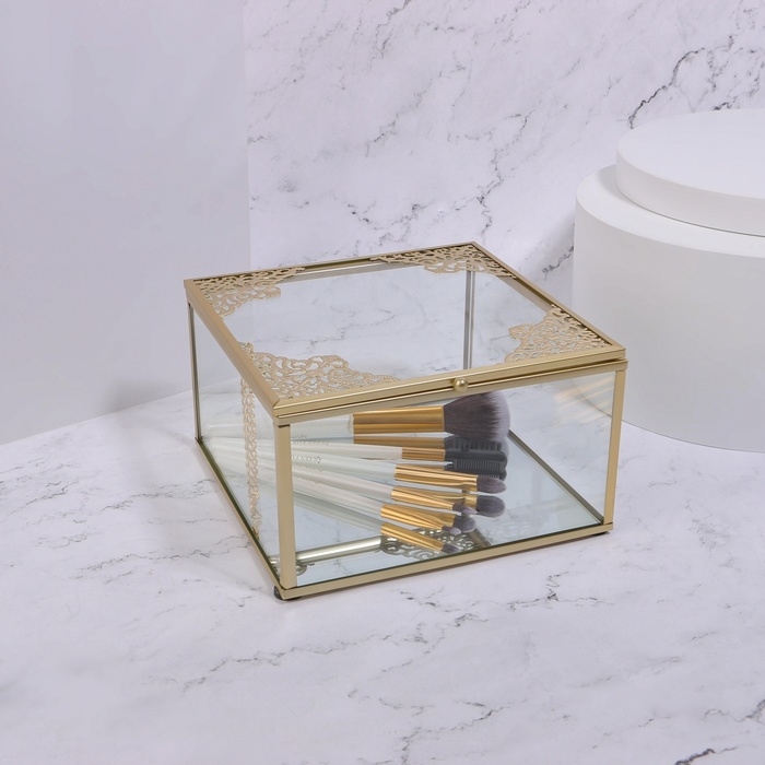 Органайзер для хранения «GREAT», с крышкой, стеклянный, с зеркальным дном, 1 секция, 15 × 15 × 8,5 см, цвет прозрачный/медный