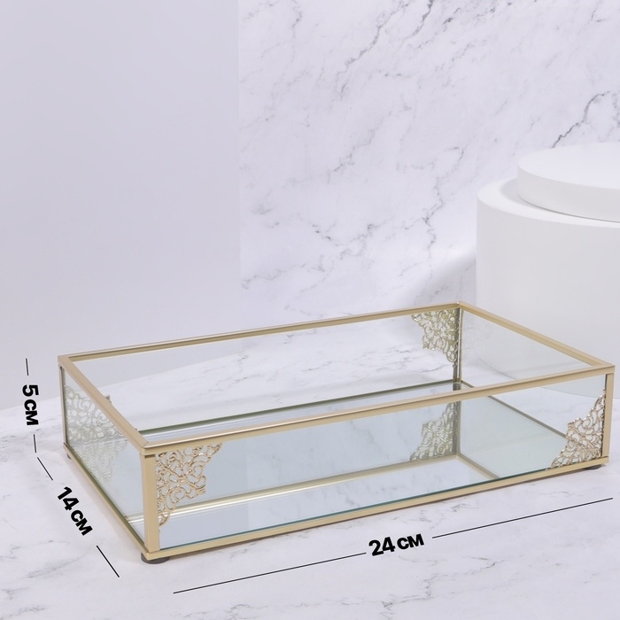 Органайзер для хранения «GREAT», стеклянный, с зеркальным дном, 1 секция, 24 × 14 × 5 см, цвет прозрачный/медный