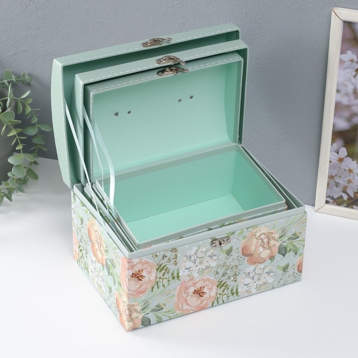 Шкатулка картон сундучок "Крупные бутоны" набор 3 шт 26х18х16,5 24х16х14,5 22х14х12,7 см