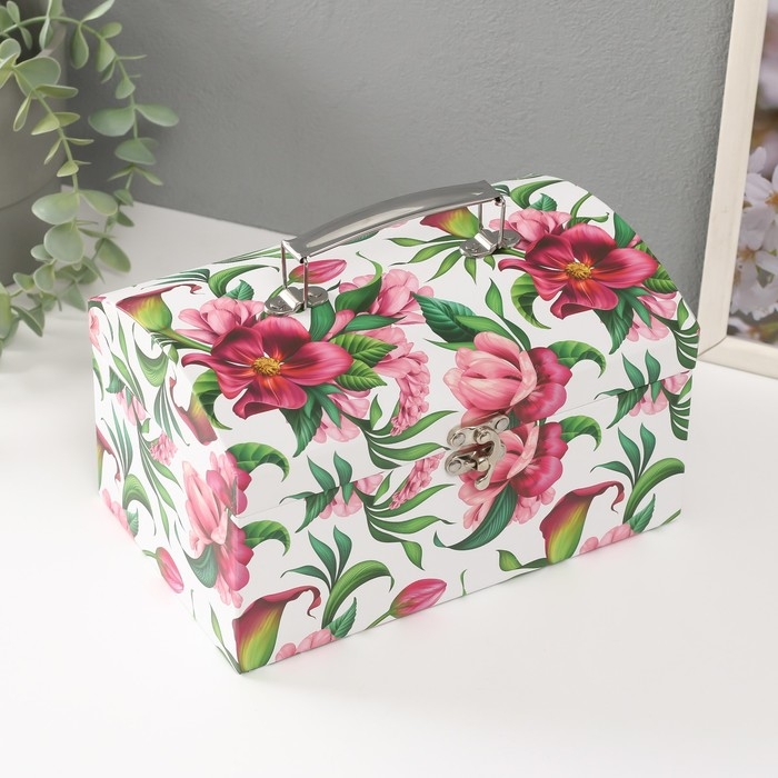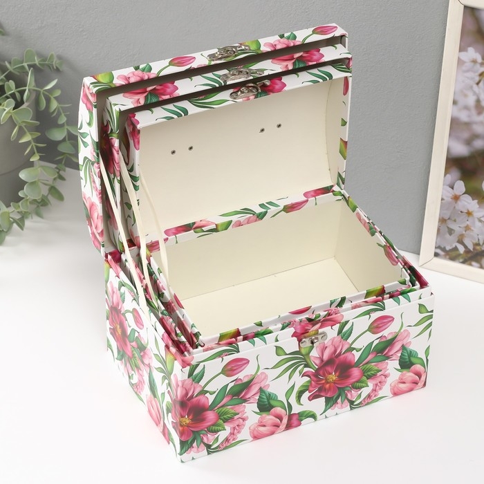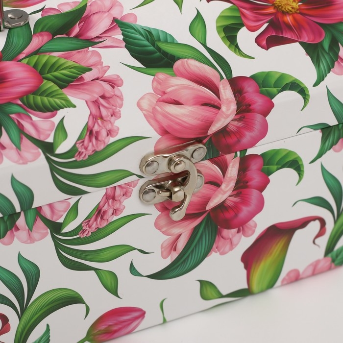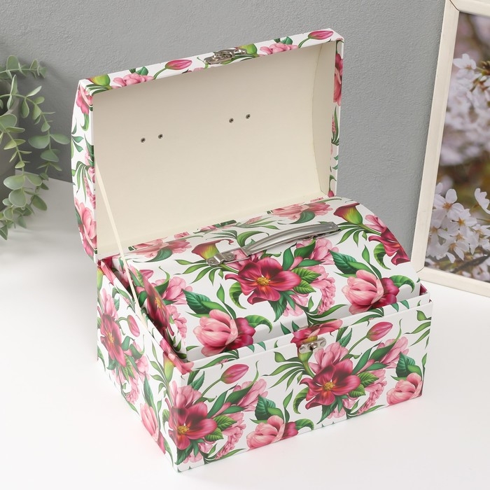 Шкатулка картон сундучок "Яркие цветы" набор 3 шт 26х18х16,5 24х16х14,5 22х14х12,7 см