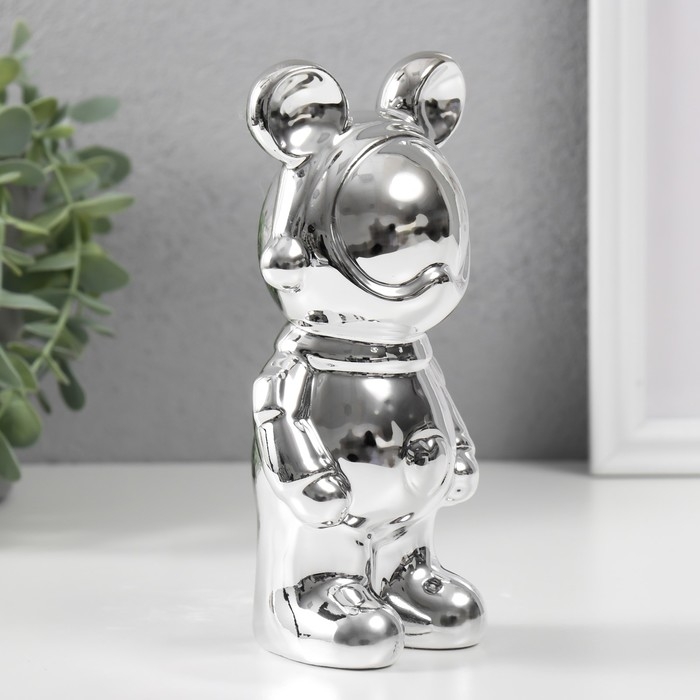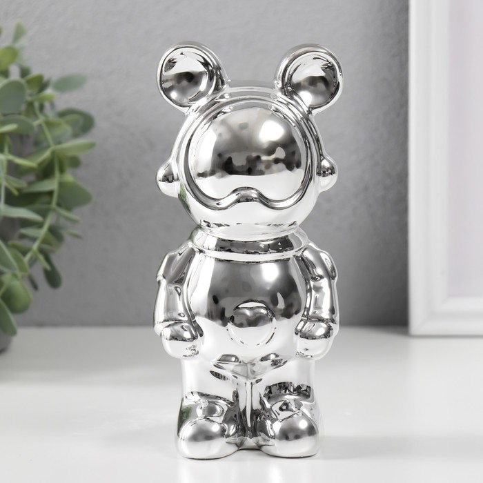 Сувенир керамика "Мишка-космонавт" серебро 8х6х18 см