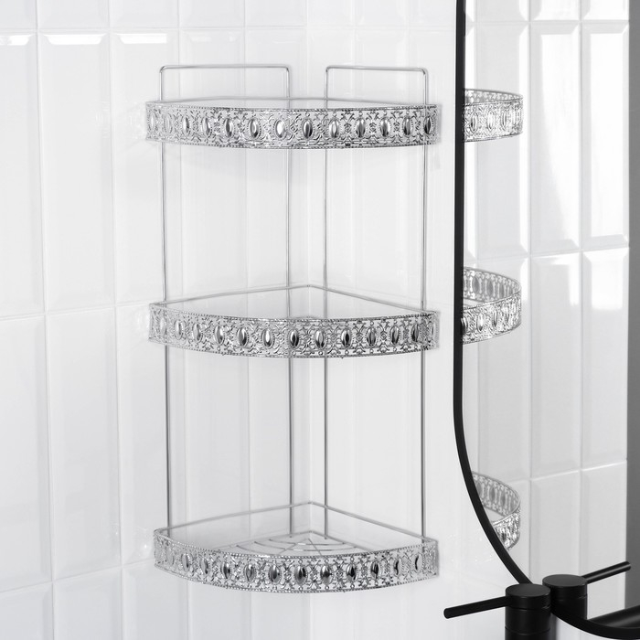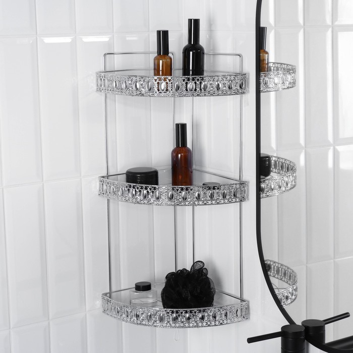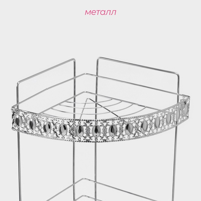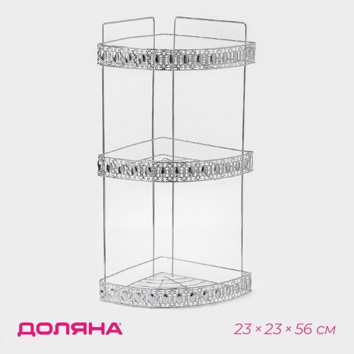 Полка угловая 3-х ярусная Доляна, 23×23×56 см, цвет хром