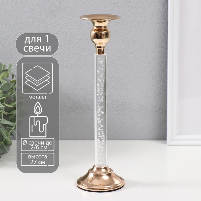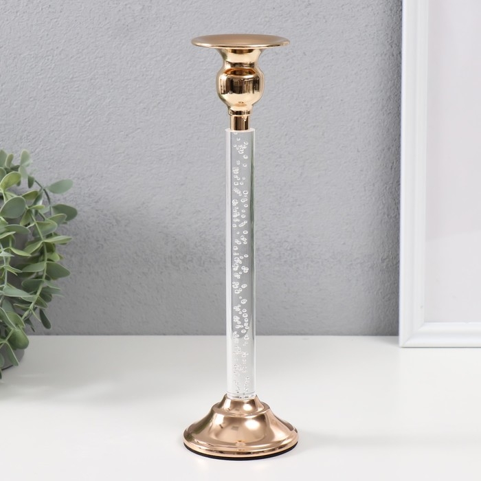 Подсвечник металл, акрил на 1 свечу "Аква" d=2-6 см золото 8х8х27 см
