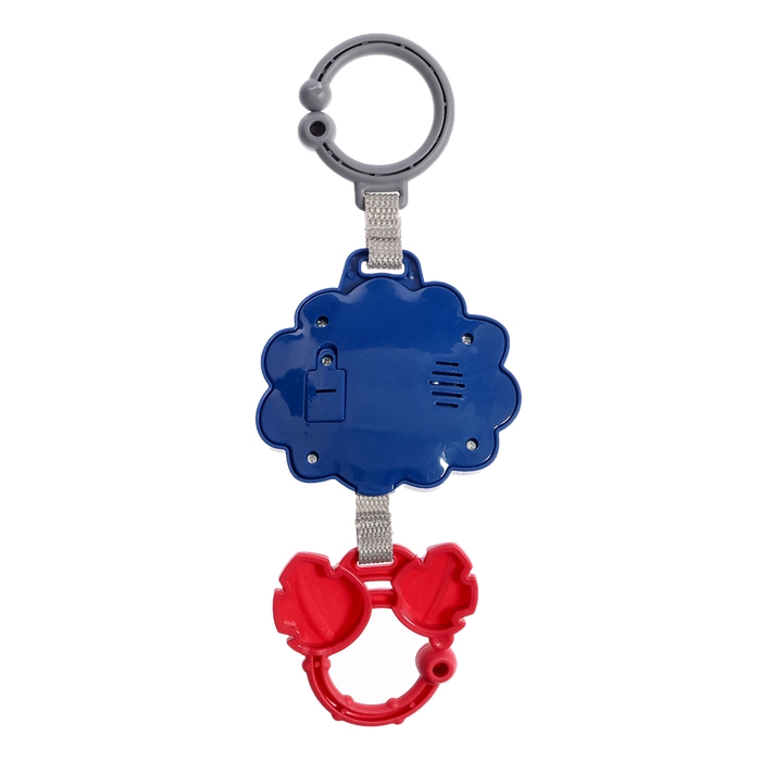 - С помощью крючка игрушка легко крепится на кроватку, коляску или автолюльку, а потом также легко снимается. Удобная ручка позволит малышу самому в любой момент включить мелодии.