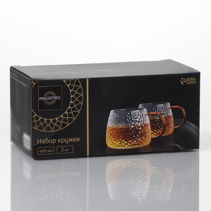 Набор стеклянных кружек Magistro «Сара», 2 шт, 400 мл, 12×9×8 см