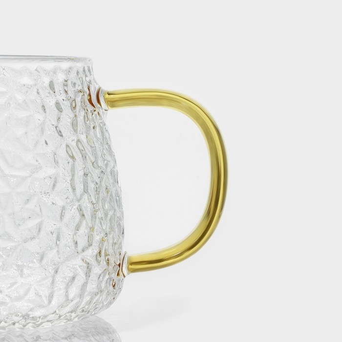 Этот стильный набор кружек станет отличным выбором для вашей кухни или столовой. Изготовленные из прочного стекла, кружки имеют золотистые ручки, которые придают им особый шарм. Благодаря удобному размеру, эти кружки идеально подходят для кофе, чая, горячего шоколада и других горячих напитков.