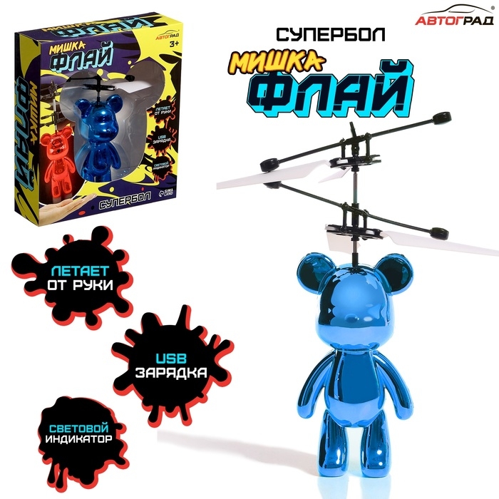 Супербол «Мишка Флай», летает, работает от аккумулятора, цвет синий