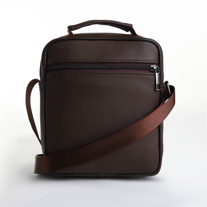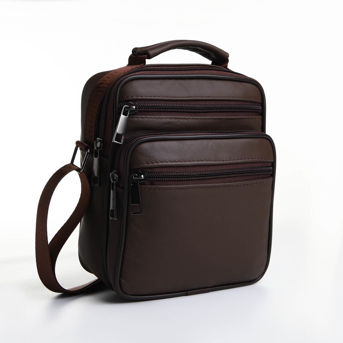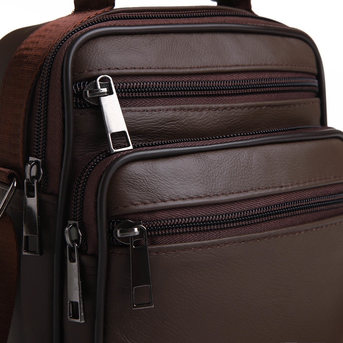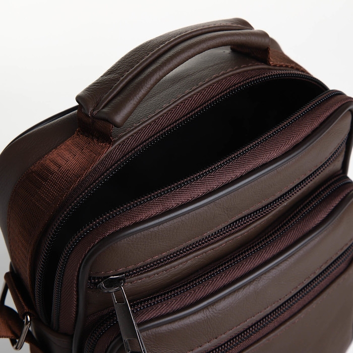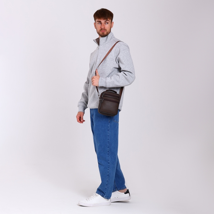 Сумка мужская на молниях, длинный ремень, цвет коричневый