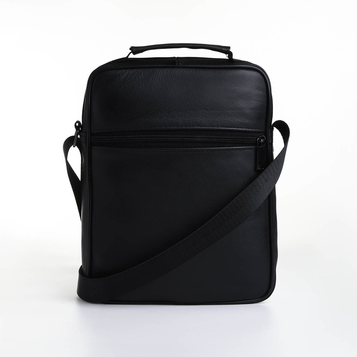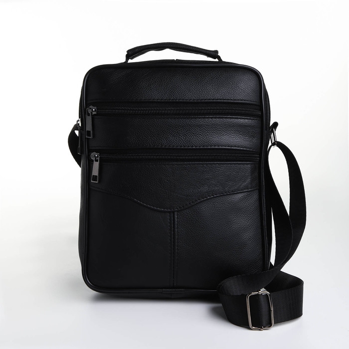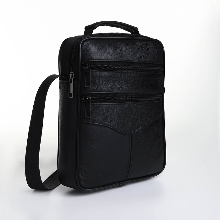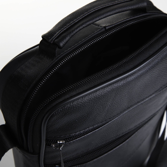 Сумка мужская на молниях, длинный ремень, цвет чёрный