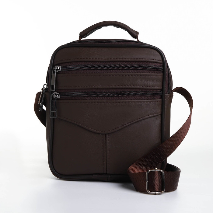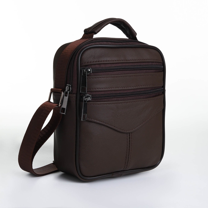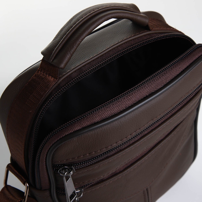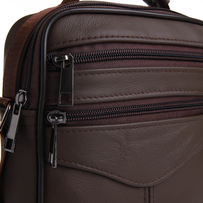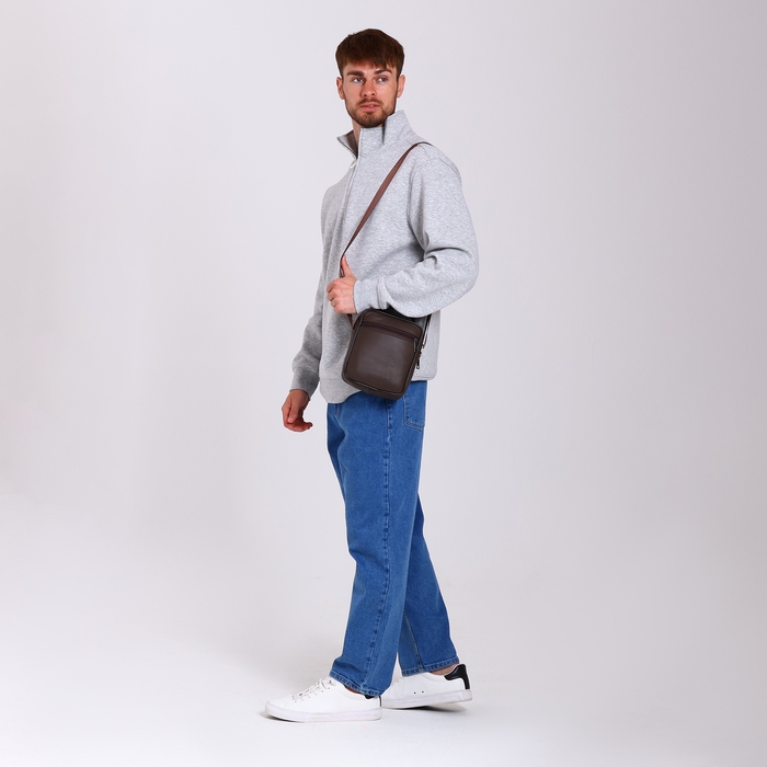 Сумка мужская на молниях, длинный ремень, цвет коричневый