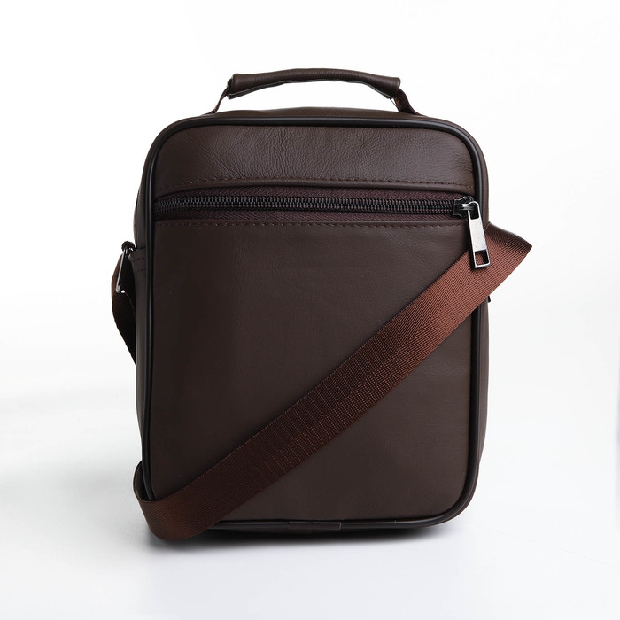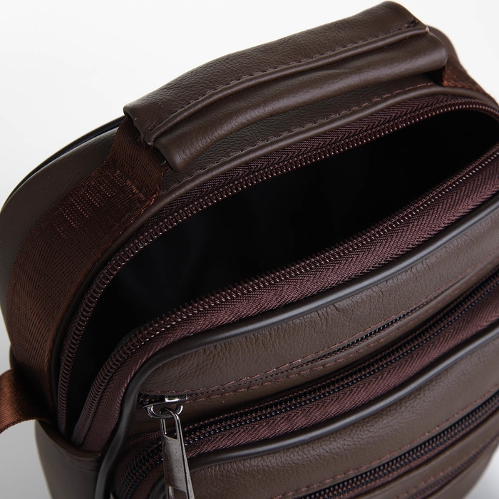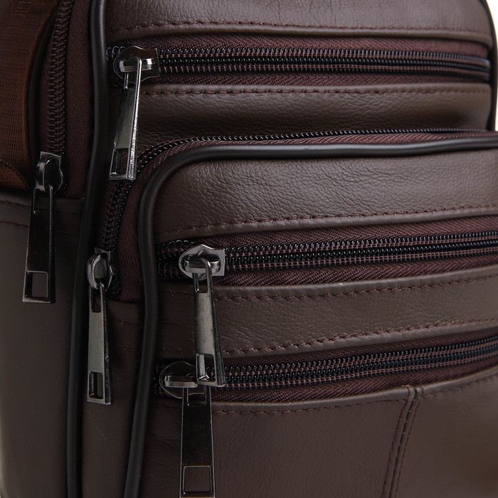 Сумка мужская на молниях, длинный ремень, цвет коричневый