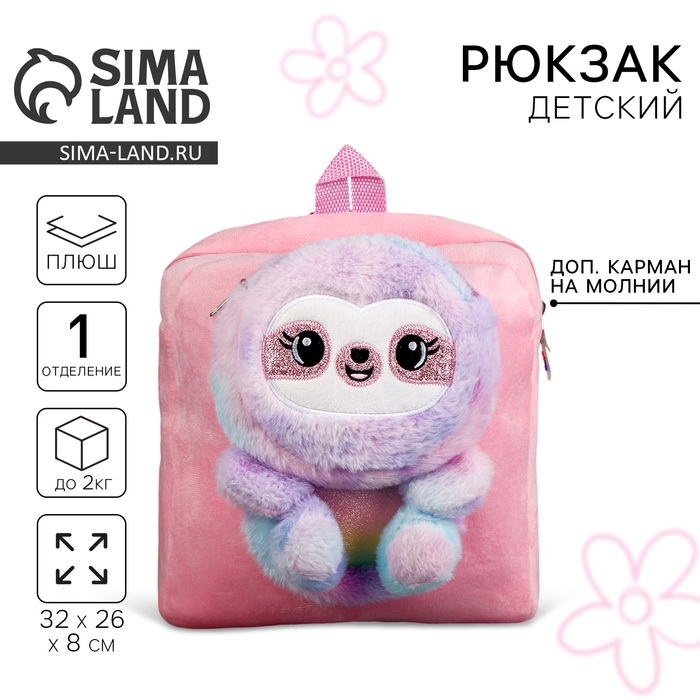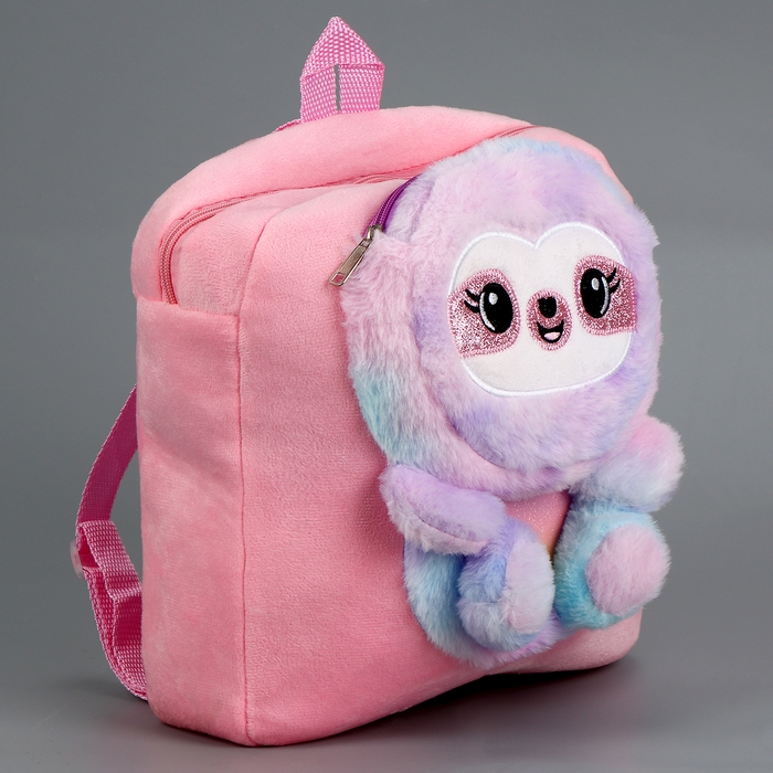 Рюкзак детский плюшевый для девочки« Ленивец», цвет розовый