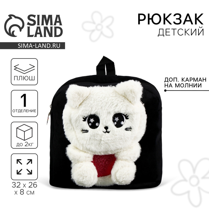 Рюкзак детский плюшевый для девочки «Кошечка», цвет черный