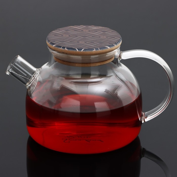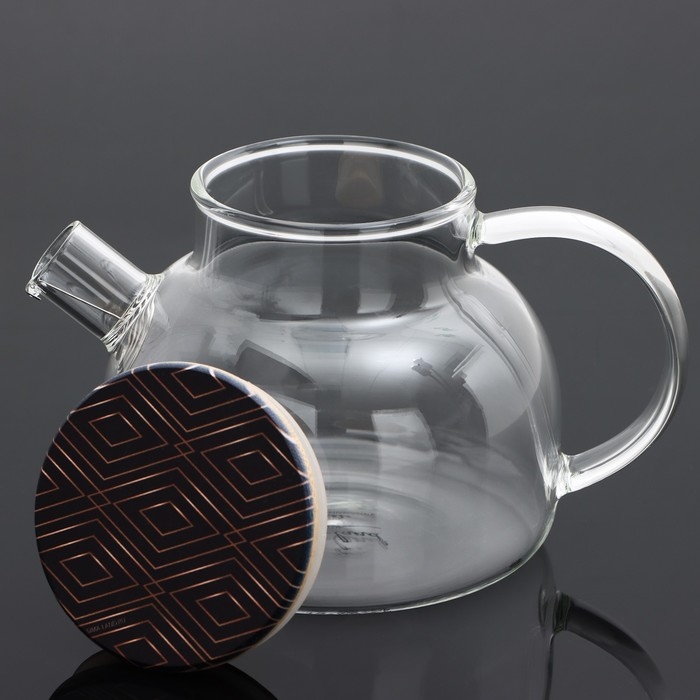 Чайник стеклянный заварочный с бамбуковой крышкой «Геометрия», 600 мл