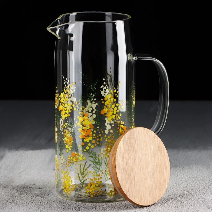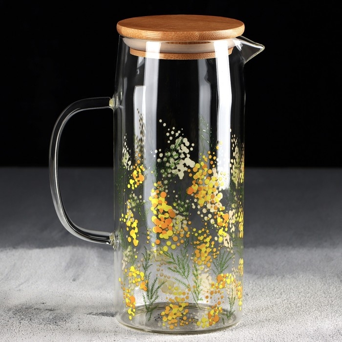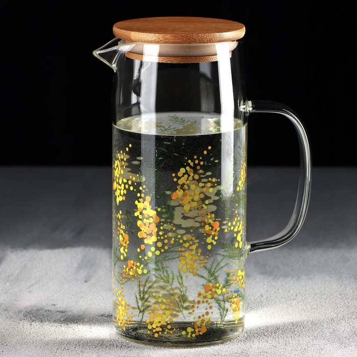 Кувшин стеклянный с бамбуковой крышкой «Нежная мимоза», 1000 мл, с крышкой