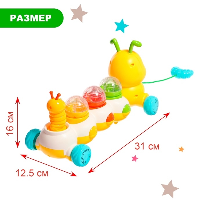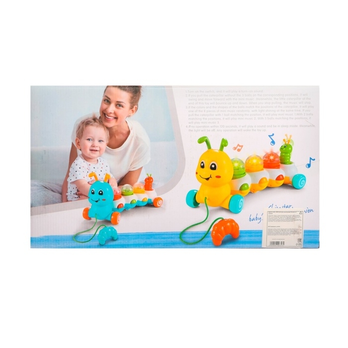 Музыкальная каталка на веревке «Гусеница», световые и звуковые эффекты