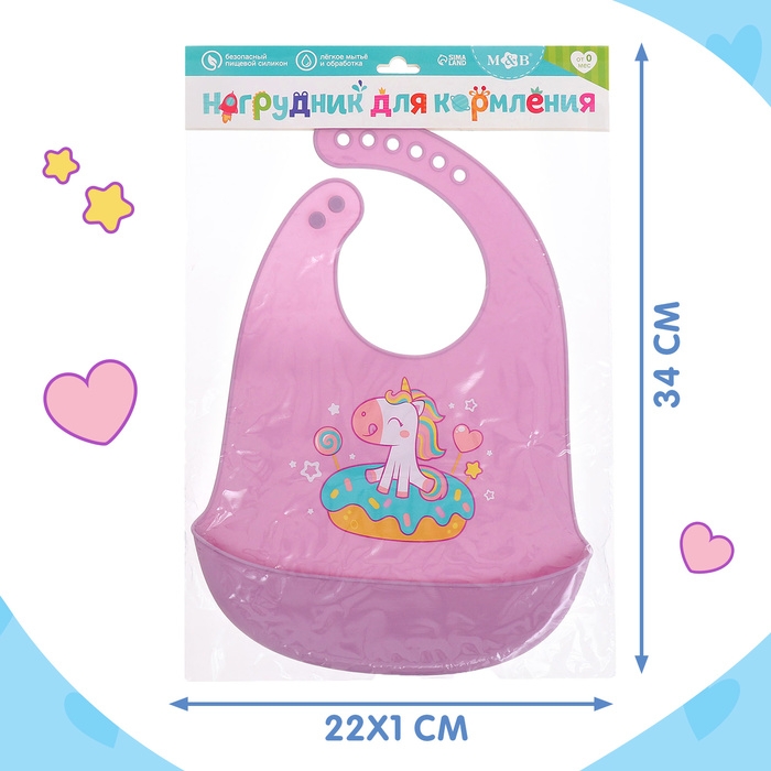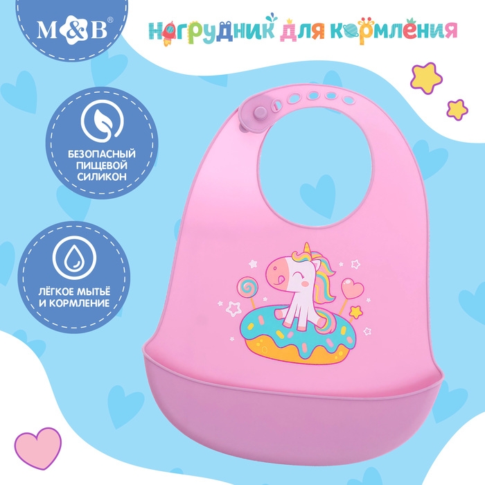 Нагрудник для кормления «Единорог», силиконовый, с карманом, цвет фиолетовый