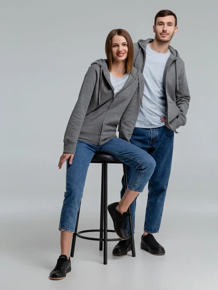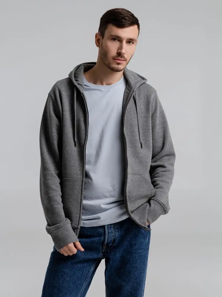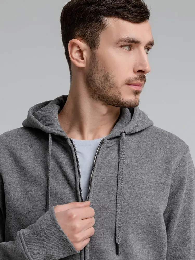 Толстовка на молнии с капюшоном унисекс King, темно-серый меланж, размер S