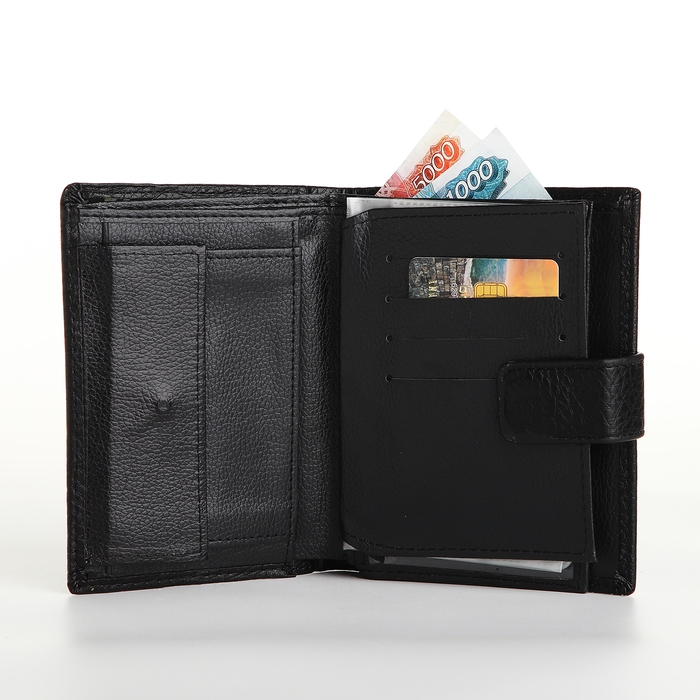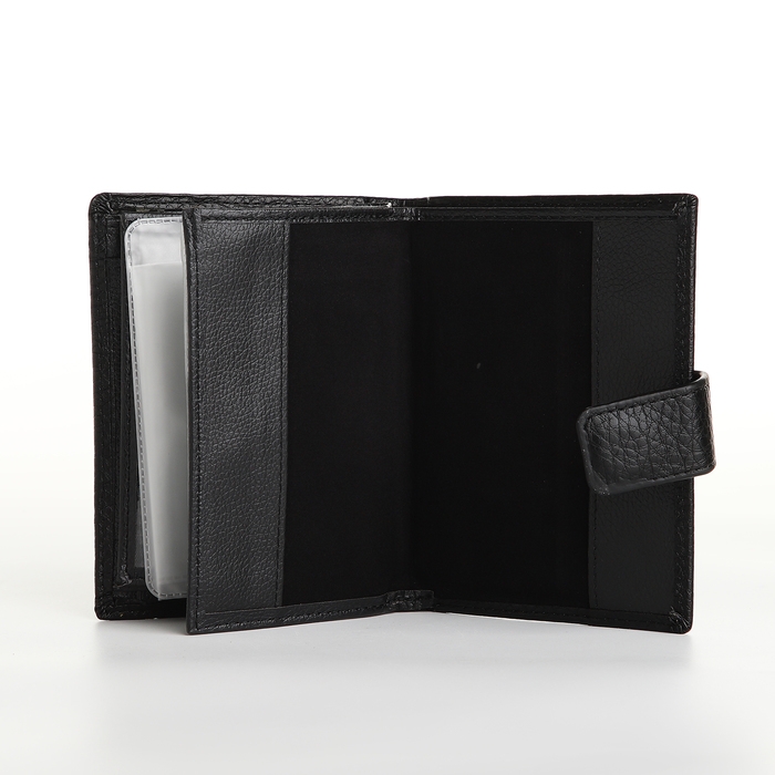 Портмоне мужское на магните 3 в 1, отдел для автодокументов, паспорта, цвет чёрный