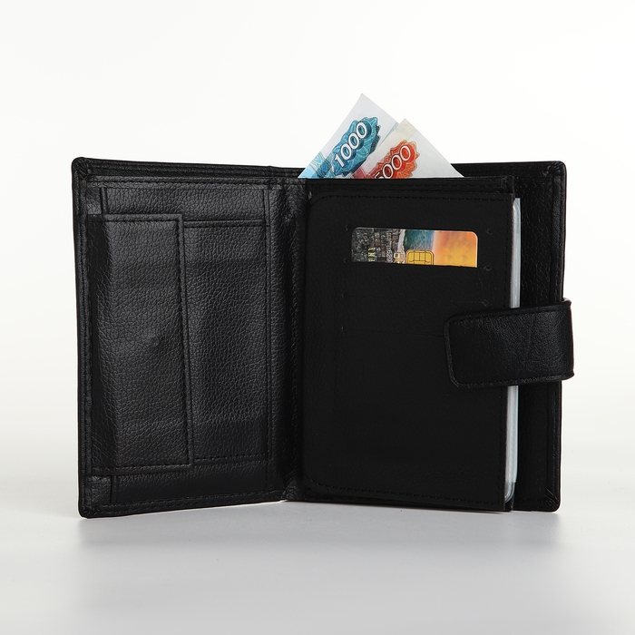 Портмоне мужское на магните 3 в 1, отдел для автодокументов, паспорта, цвет чёрный