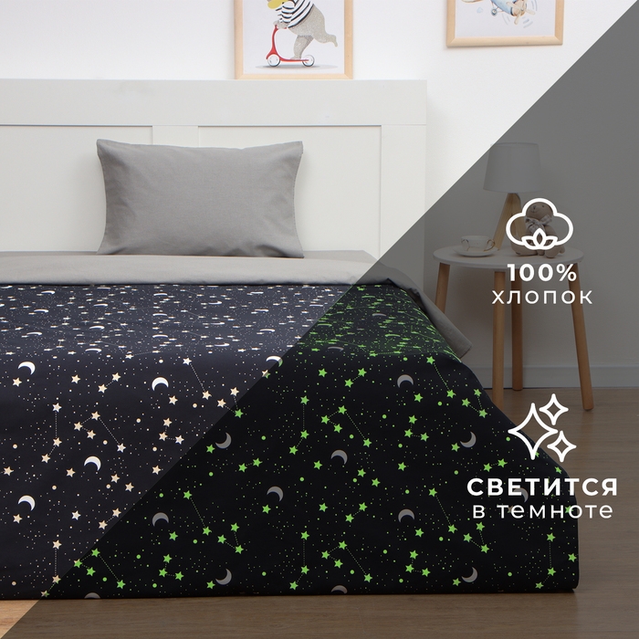Покрывало "Этель" 1,5 сп Звёздное небо, 145*210 см, 100% хлопок, рогожка
