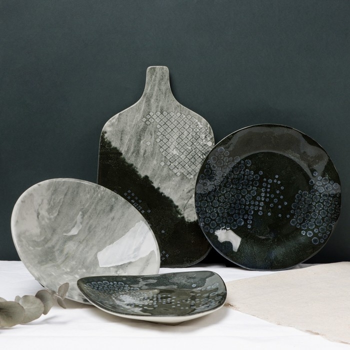 Блюдо керамическое «Стоун», 29.7х17.5 см, цвет серый