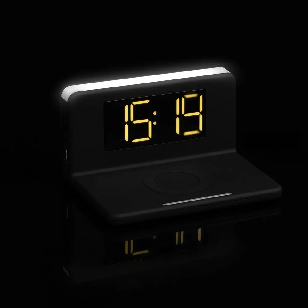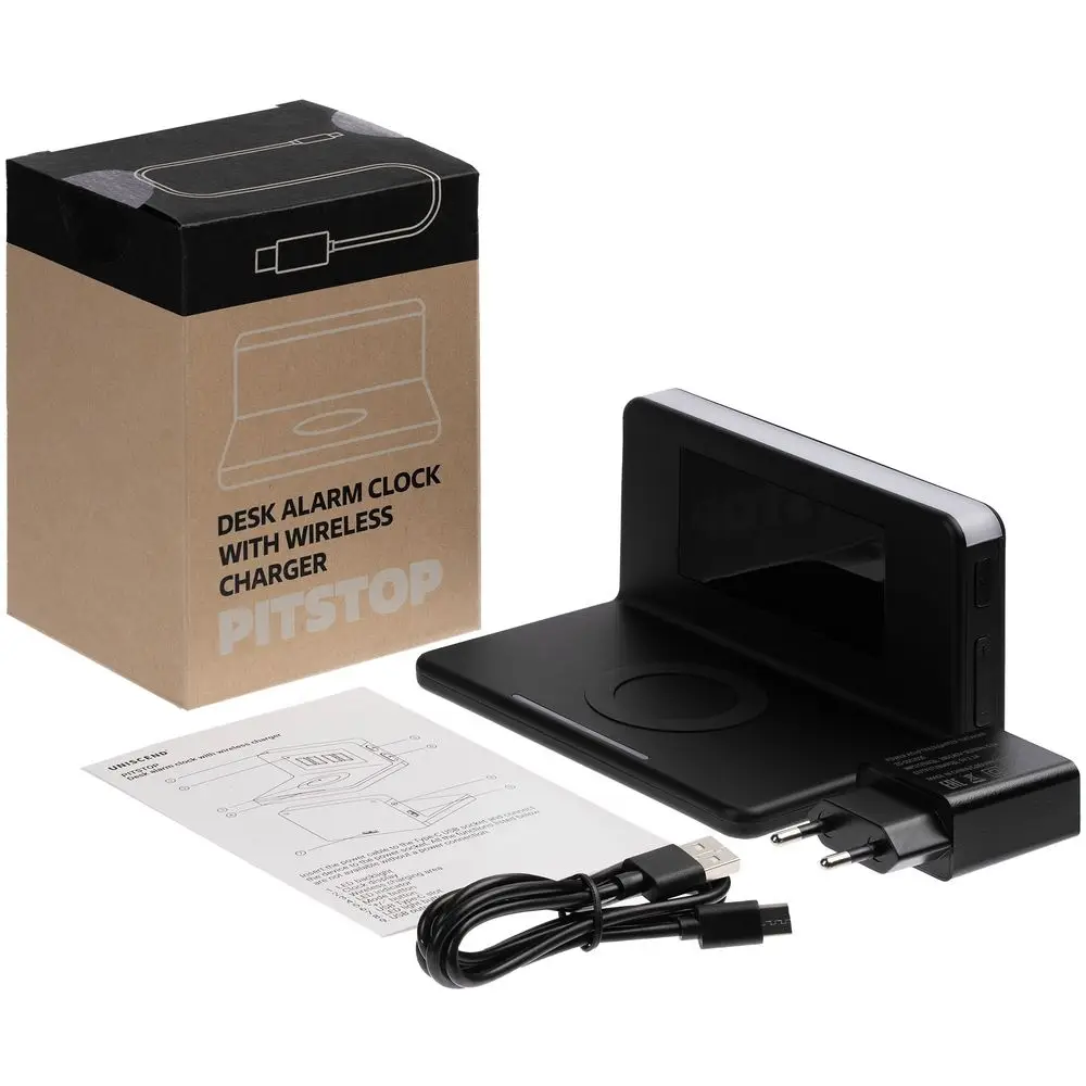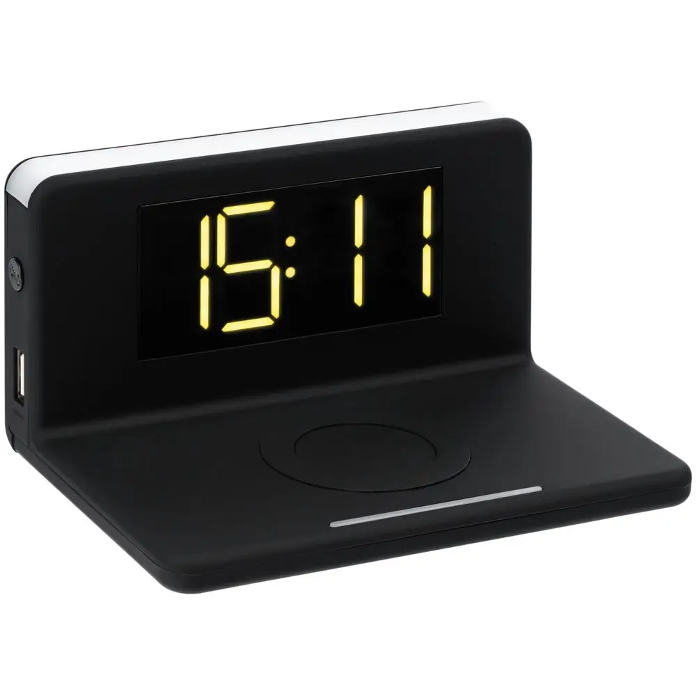 Часы настольные с беспроводным зарядным устройством Pitstop, черные
