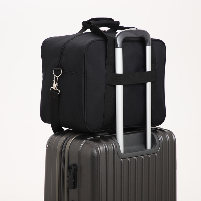 Сумка дорожная на молнии, наружный карман длинный ремень, цвет чёрный