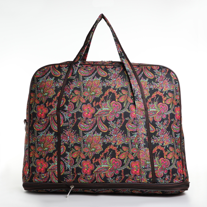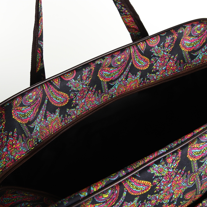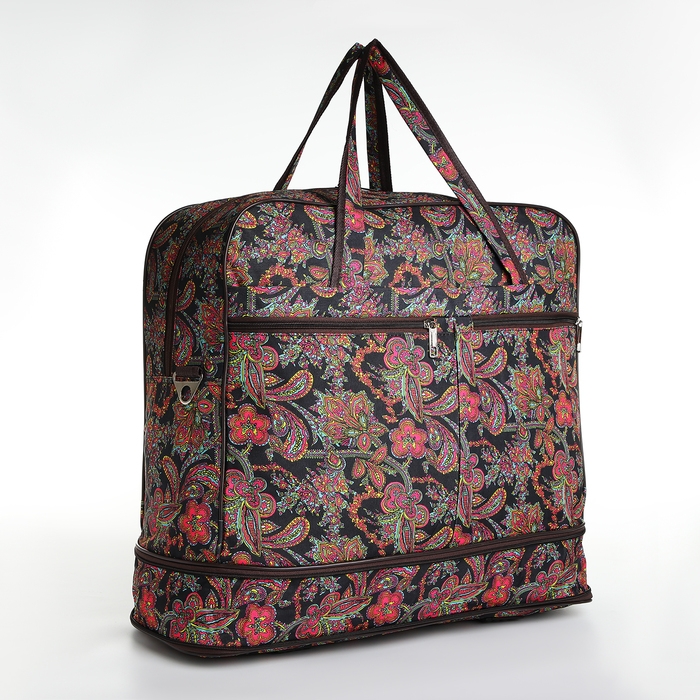 Сумка дорожная женская на молнии, с увеличением, 3 наружных кармана, длинный ремень, цвет чёрный/разноцветный