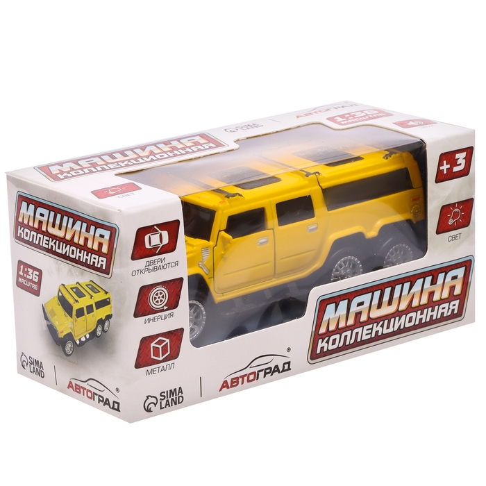 Машина металлическая «Внедорожник», 1:36, свет, звук, открываются двери, инерция, цвет МИКС