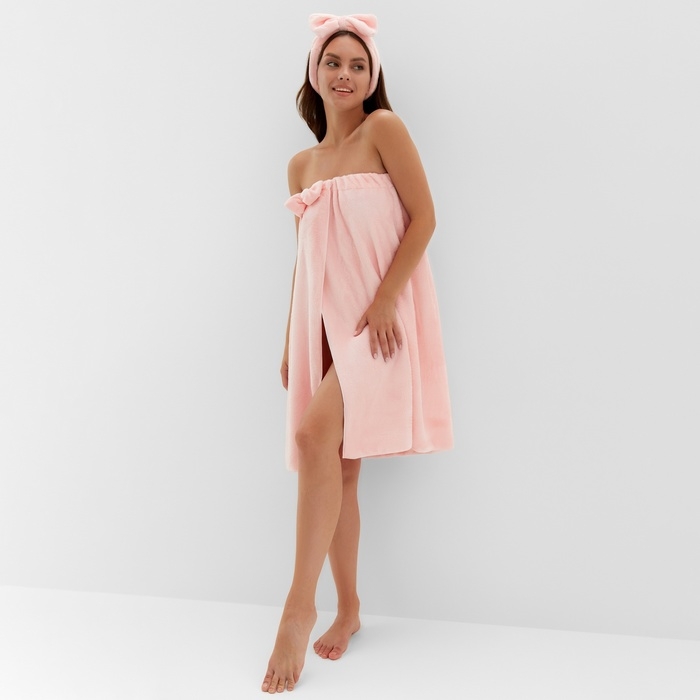 Набор для бани и ванной Этель "Бантик", цв. розовый, полотенце- парео 75*120 см+повязка