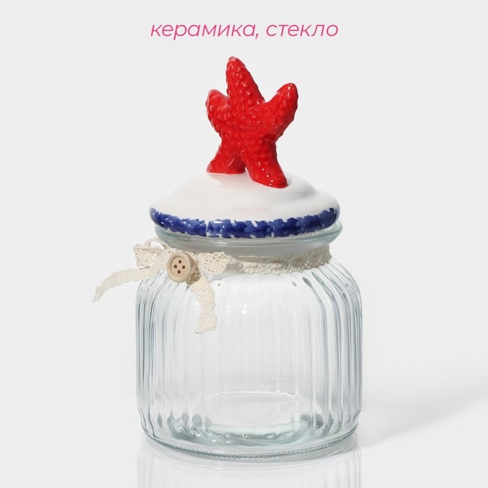Банка стеклянная для хранения сыпучих продуктов Доляна «Морская звезда», 600 мл, 11×19 см, с керамической крышкой