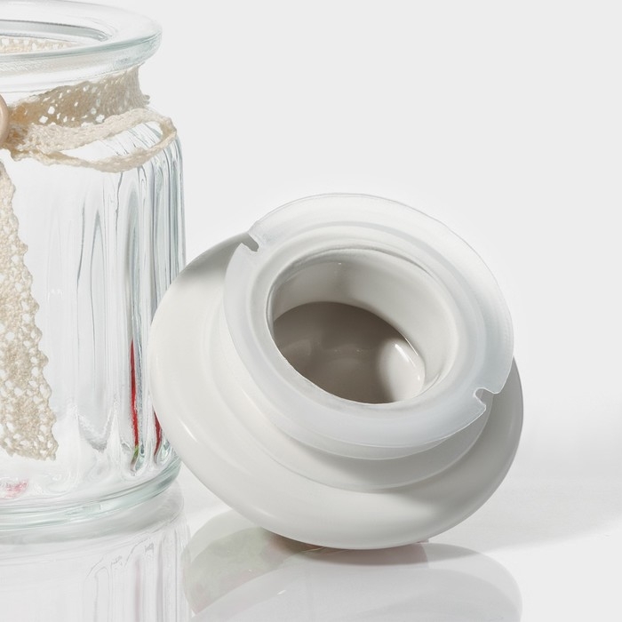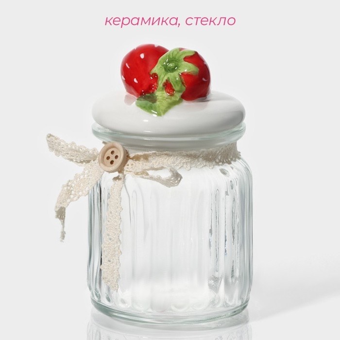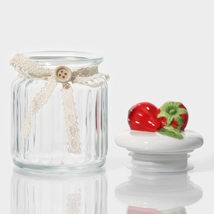 Банка стеклянная для хранения сыпучих продуктов Доляна «Клубника», 250 мл, 8×13 см, с керамической крышкой