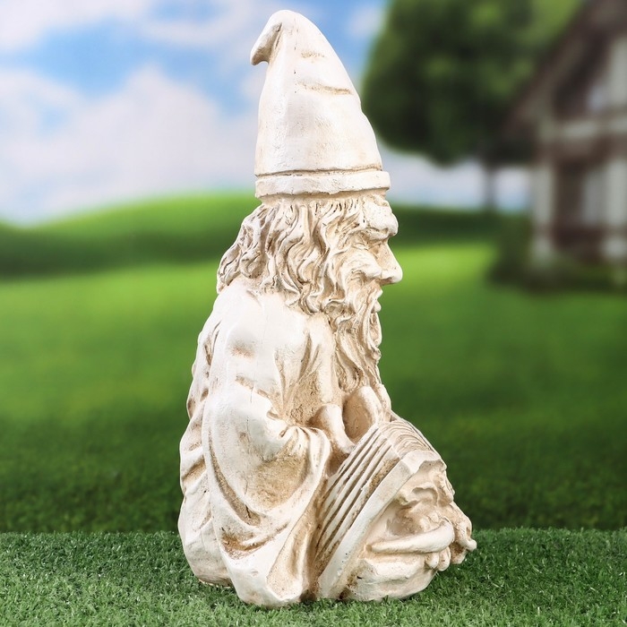 Садовая фигура "Умный гном" серый камень, 18х15х29см