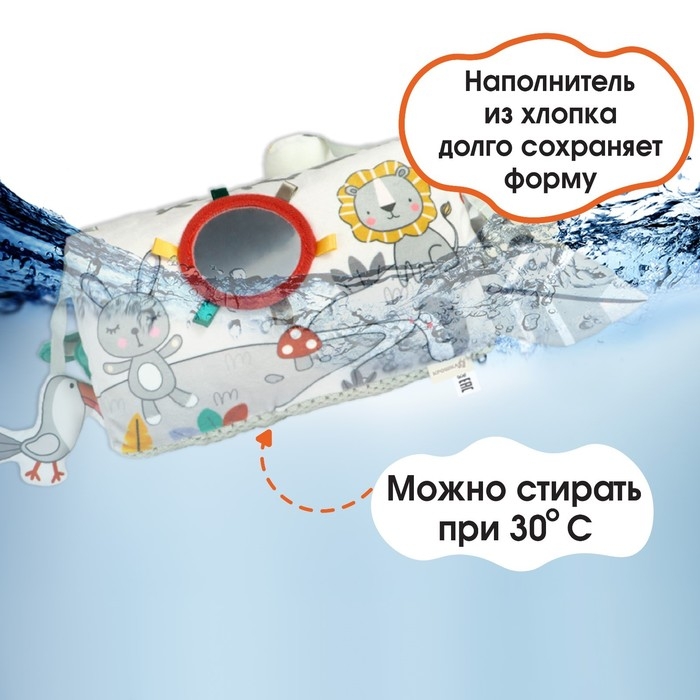 Развивающая игрушка «Подушечка Зверята», прорезыватель, погремушка, зеркало, Крошка Я