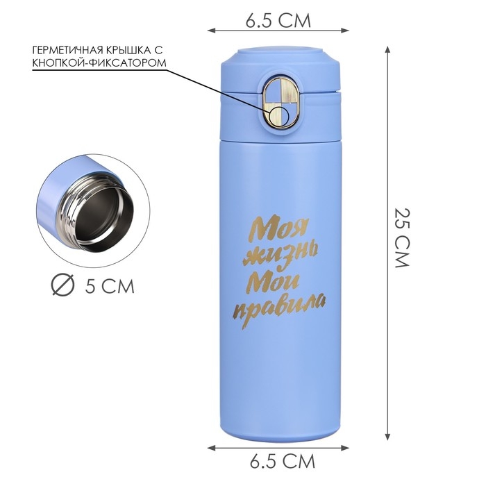 Термокружка для кофе и чая "Моя жизнь - мои правила" идеальна для офиса, автомобиля, длительных прогулок и детям в школу. Благодаря специальному покрытию надежно лежит в руке.