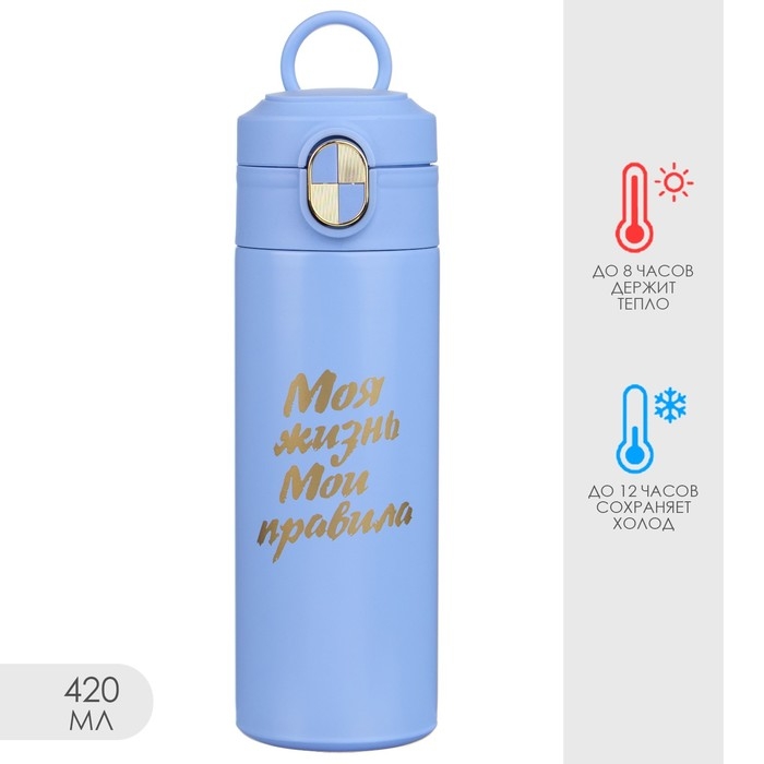 Термокружка, 420 мл, Simple "Моя жизнь - мои правила", сохраняет тепло до 8 ч
