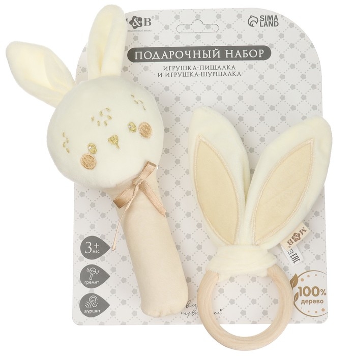 Подарочный набор новогодний: игрушка - пищалка и иигрушка - шуршалка «Зайка», цвет бежевый