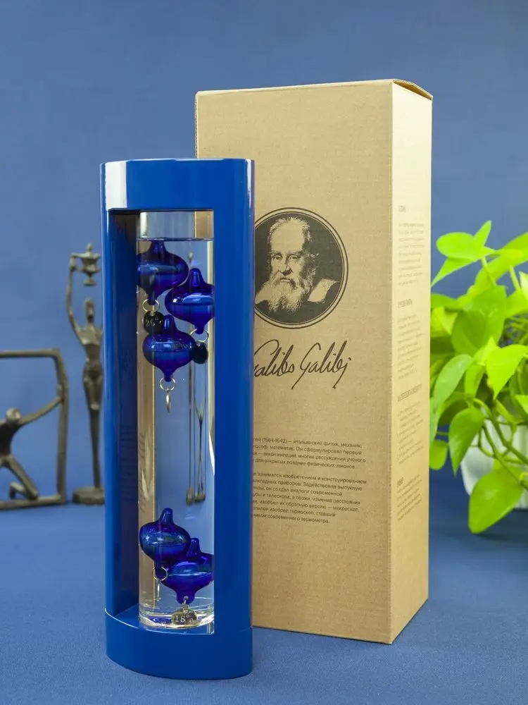 Любопытный термометр, изобретенный великим Галилео Галилеем, который первым обнаружил, что плотность жидкости увеличивается при снижении температуры и уменьшается при ее повышении.