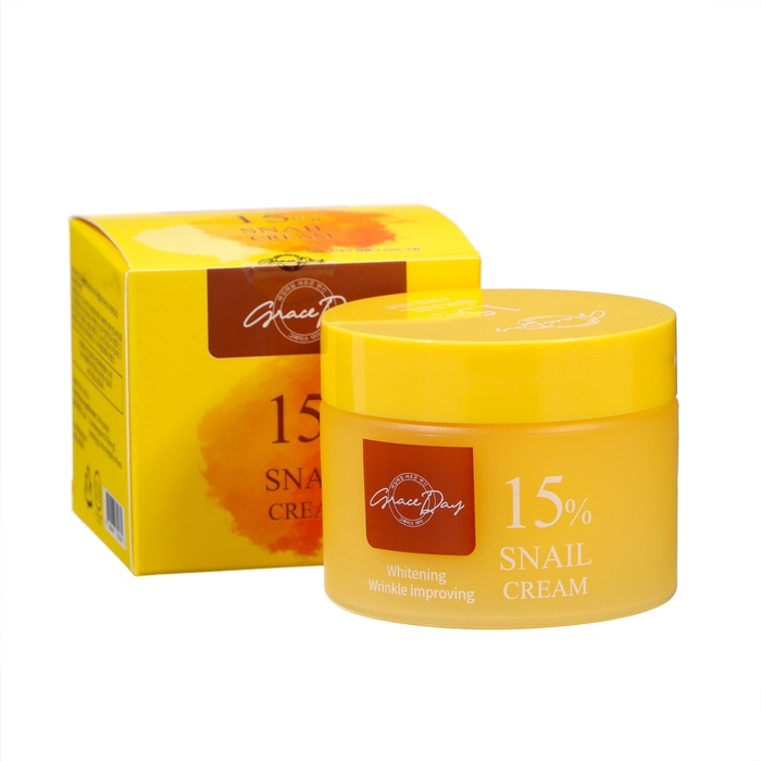 Grace Day Snail 15% Cream. Восстанавливающий крем с муцином улитки Восстанавливающий крем с муцином улитки выравнивает тон и текстуру кожи, улучшает тонус и эластичность, cмягчает, разглаживает и устраняет следы усталости. Муцин улитки восстанавливает, защищает от неблагоприятных внешних воздействий, предупреждает преждевременное старение эпидермиса. Ниацинамид и аденозин усиливают синтез коллагена, эластина и керамидов, что приводит к укреплению и кожного барьера и лучшему увлажнению. Крем подходит для всех типов кожи.