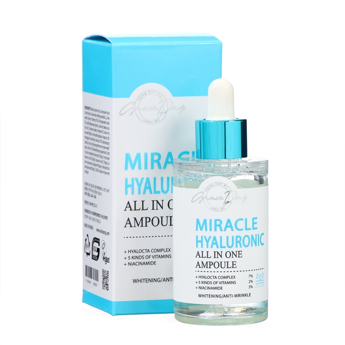 Скажи “Hello!” гладкой и увлажнённой коже! Сыворотка для лица GRACE DAY с насыщенной формулой наполняет клетки влагой и совершенствует рельеф кожи «изнутри». 8 видов гиалуроновой кислоты притягивают и надолго удерживают влагу в коже, обеспечивая эффект моментального увлажнения и устраняют признаки обезвоженности кожи. Входящий в состав комплекс мультивитаминов и ниацинамид бережно отшелушивают омертвевшие клетки заметно улучшают цвет лица. Благодаря комплексу грамотно подобранных активных компонентов сыворотка проникает в самые глубокие слои эпидермиса, активирует процесс восстановления клеток, насыщая их всеми необходимыми элементами для сохранения жизненного тонуса.