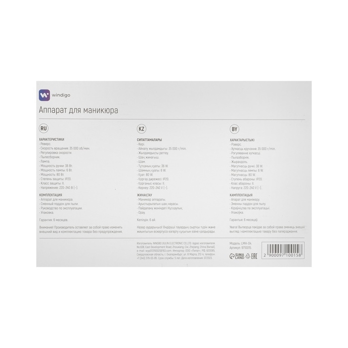 Аппарат для маникюра и педикюра Windigo LMH-04, 80 Вт, 35000 об/мин, лампа, ручка, белый