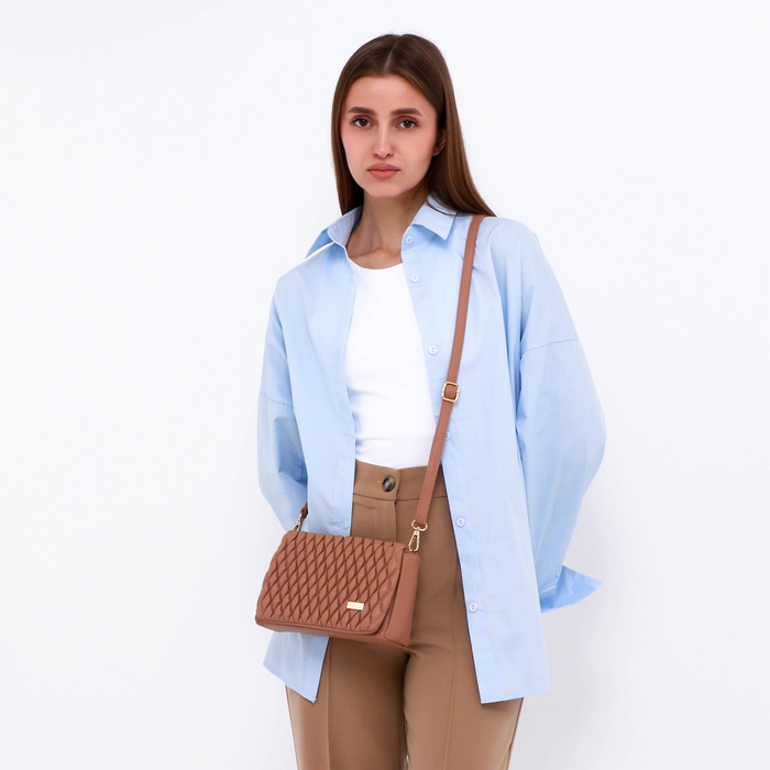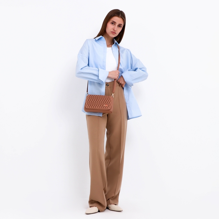 Сумка женская мессенджер на молнии, цвет бежевый