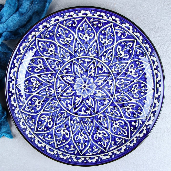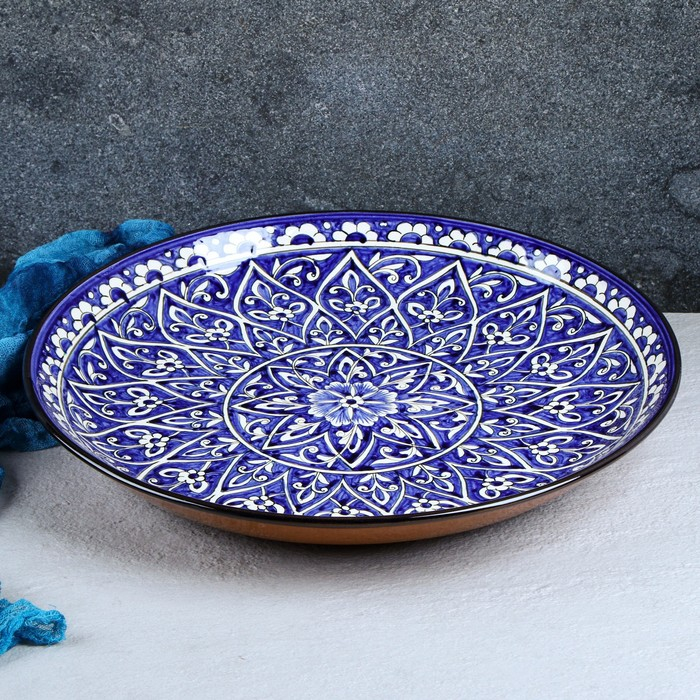 Ляган Риштанская Керамика "Цветы", 36 см, синий