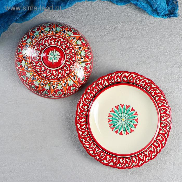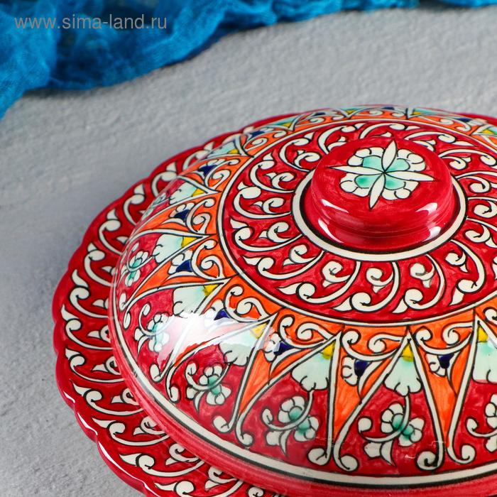 Блинница Риштанская Керамика "Цветы", 24 см, красный