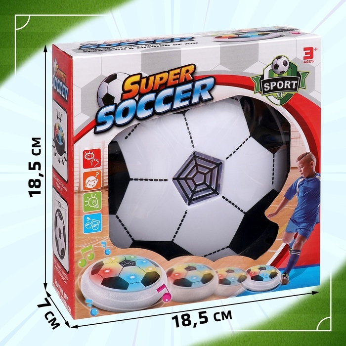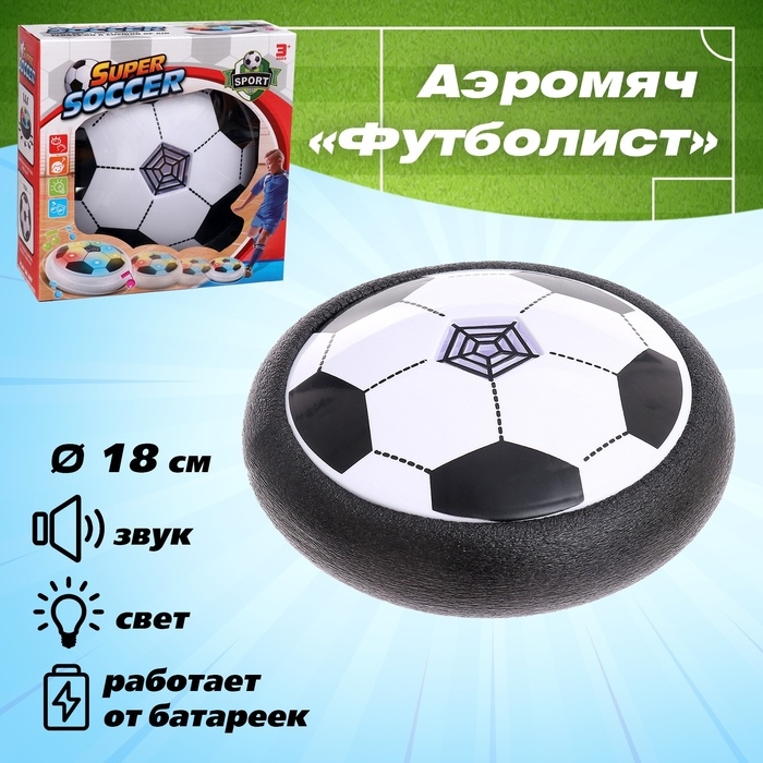 Аэромяч «Футболист» — это увлекательная игрушка для активных игр. Легкий и компактный мячик плавно скользит по любой гладкой поверхности благодаря встроенному воздушному потоку, который работает от батареек. Игрушка идеально подходит для детей от 3 лет, обеспечивая безопасность игры благодаря мягким защитным краям.